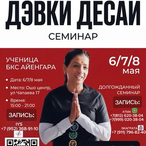 Легенда йоги, ученица Шри Б.К.С. Айенгара, Дэвки Десаи проведет большой трехдневный семинар в Санкт-Петербурге.